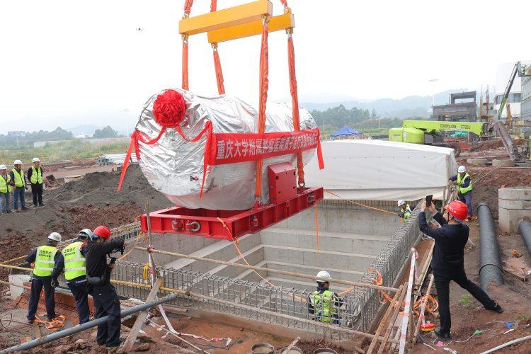 重达15吨的质子加速器正在吊装。