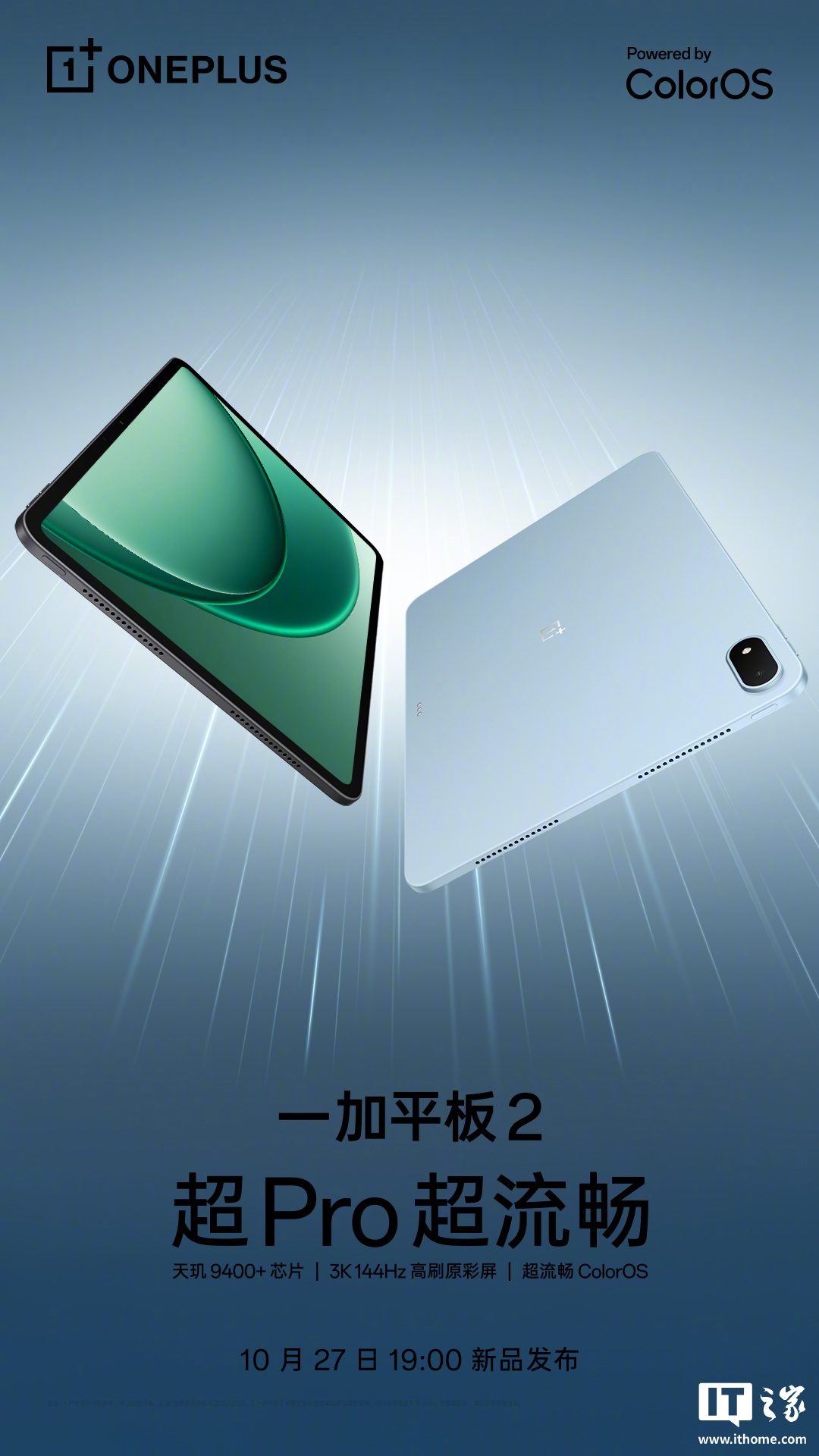 海报中出现了一加平板 2 的两款配色股点网,整体造型和一加平板 2 Pro 类似,官方宣传语为“超 Pro,超流畅”。