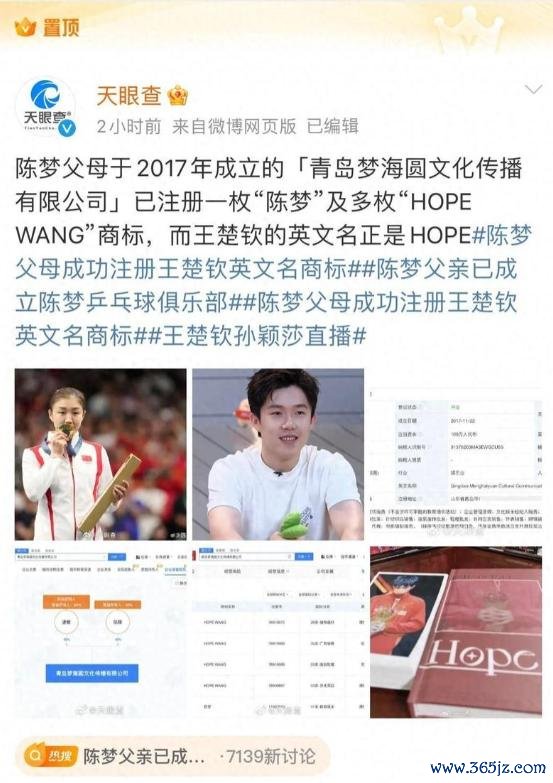 先是网友扒出陈妈妈开的公司,注册的一个商标刚好和王楚钦的英文名重合。